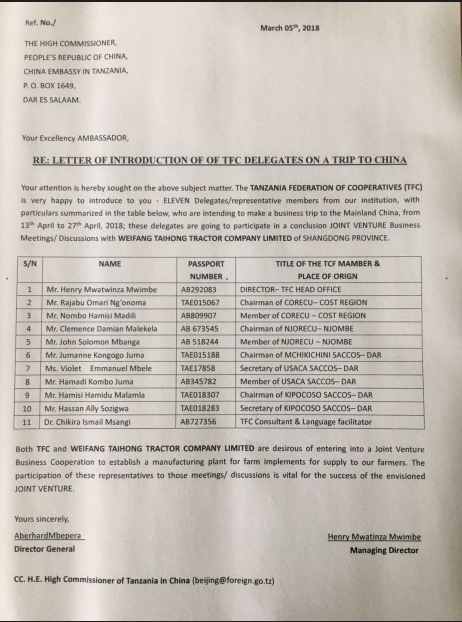 據悉,此次來訪的坦桑尼亞合作社(TFC)聯合會成員均為坦桑尼亞國家農業(yè)合作組織官員,此行通過對中國領先的農機制造企業(yè)實地考察進行學習和交流,探討與坦桑尼亞國內農業(yè)發(fā)展之路。