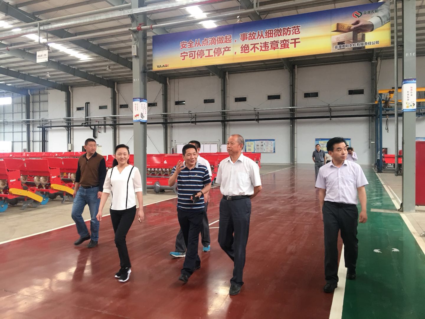 2018年5月29日上午,河南省農(nóng)機局副巡視員程雙進在南陽市農(nóng)機局劉勤局長、縣農(nóng)機局、縣產(chǎn)業(yè)集聚區(qū)領導陪同下蒞臨亞澳視察亞澳農(nóng)機智能制造項目發(fā)展建設情況。