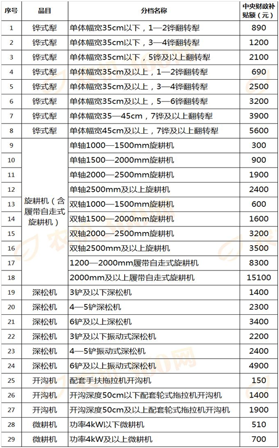 2019年農(nóng)機(jī)購(gòu)置補(bǔ)貼額一覽表